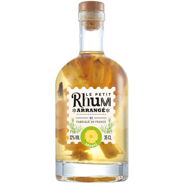 Cette declinaison du Petit Rhum arrange en format 35CL est elabore a partir des ananas Victoria de lIle de La Reunion, recoltes a parfaite maturite sur la plante, livres en 48H et decoupes au couteau des reception dans notre atelier artisanal. Fraichement coupes et immediatement mis en bouteille a la main dans un rhum agricole AOC de Martinique avec une gousse de Vanille Bourbon de Madagascar.